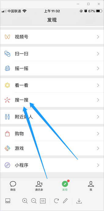 首先,我们打开手机微信,点击发现中的搜一搜。